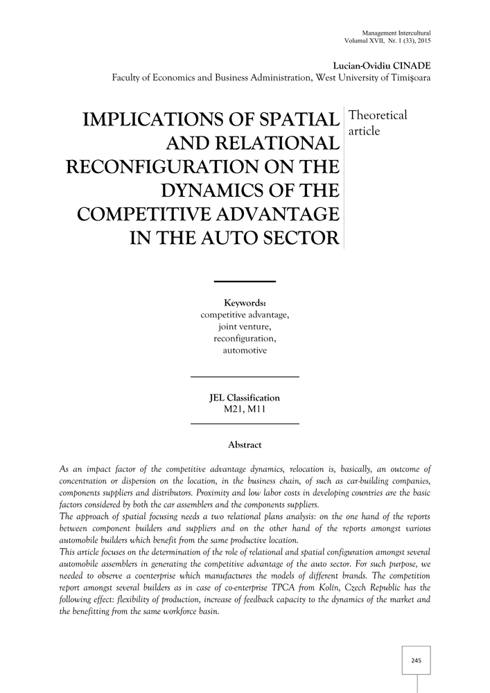 - Keywords: competitive advantage, automotive, reconfiguration, territorial attractiveness