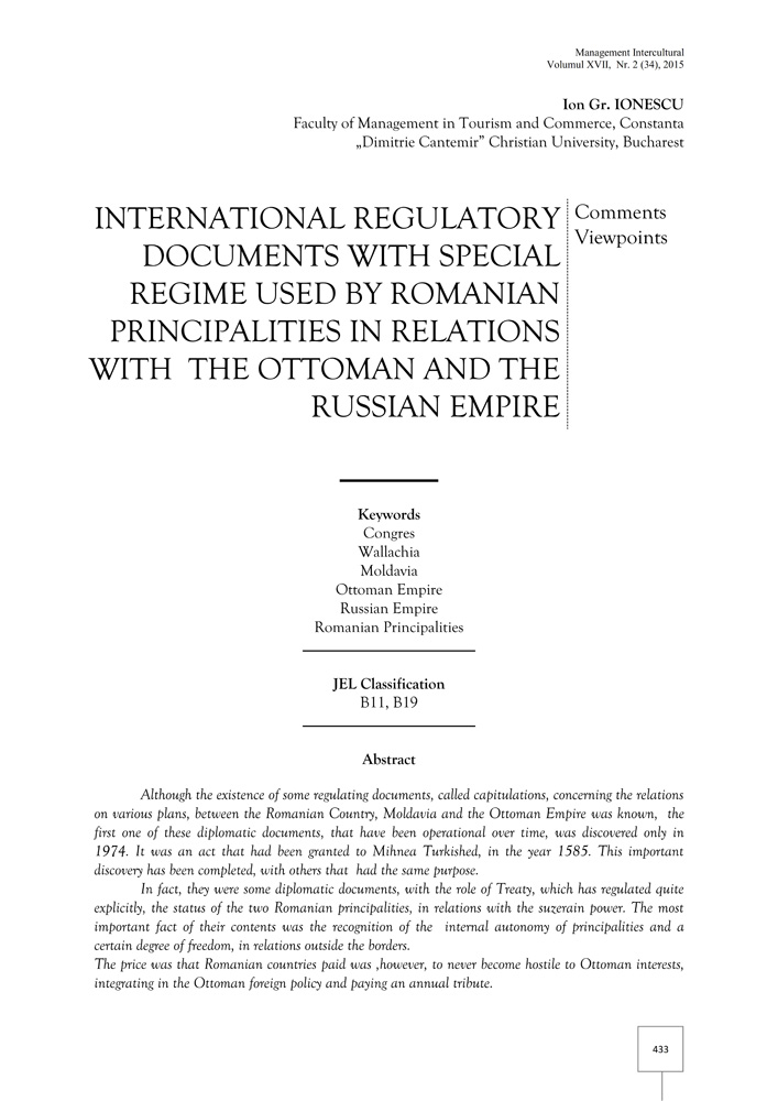 Although the existence of some regulating documents, called capitulations, concerning the relations on various plans, between the Romanian Country, Moldavia and the Ottoman Empire was known, the first one of these diplomatic documents, that have been operational over time, was discovered only in 1974. It was an act that had been granted to Mihnea Turkished, in the year 1585. This important discovery has been completed, with others that had the same purpose. In fact, they were some diplomatic documents, with the role of Treaty, which has regulated quite explicitly, the status of the two Romanian principalities, in relations with the suzerain power. The most important fact of their contents was the recognition of the internal autonomy of principalities and a certain degree of freedom, in relations outside the borders. The price was that Romanian countries paid was ,however, to never become hostile to Ottoman interests, integrating in the Ottoman foreign policy and paying an annual tribute.