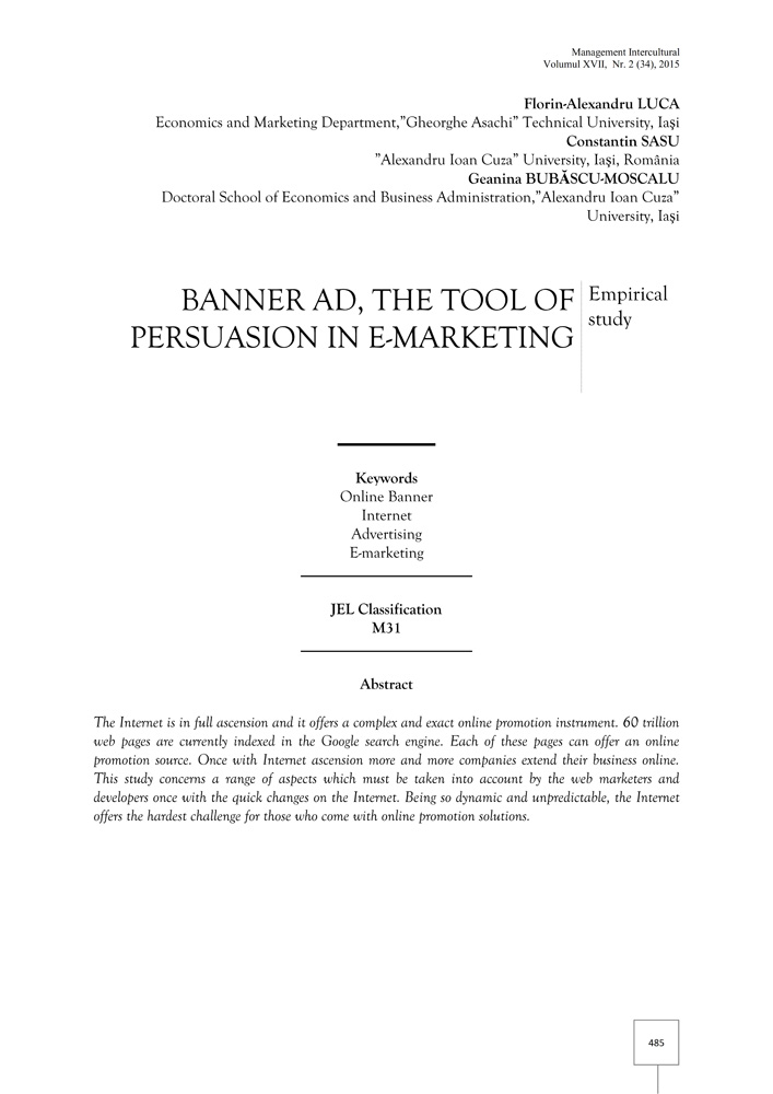 - Keywords: Online Banner, Internet, Advertising, E-marketing